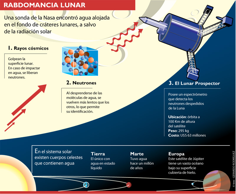 An infographic about the -by the time unexpected- discovery of water on the moon.