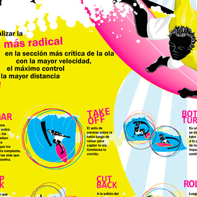Infographic, Surf maneuvers. The graphic shows several surf maneuvers