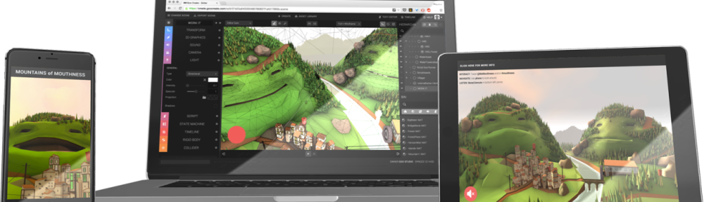 Web2015_fg2_1600-e1437732194872 (1)En el sitio se definen como la única herramienta artist-friendly de producción HTML5 y WebGL, y se han ganado mi respeto porque conseguí hacer la prueba de los prismas (‘Hola Mundo”) sin tener que programar.